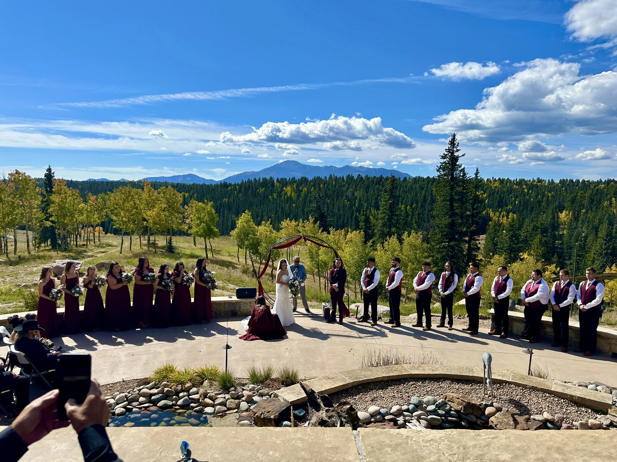 Imagine saying "I do" surrounded by the untouched beauty of Pike National Forest on our exclusive 160+ acre private estate, where majestic Pikes Peak provides a breathtaking, panoramic backdrop to your ceremony.